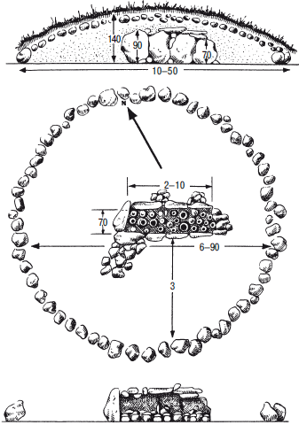 Рис. 27.Курган, окруженный и покрытый камнями, в котором находится огромная каменная гробница (IV–III вв. до н. э.). Грюнвальд близ Эйлау, Восточная Пруссия