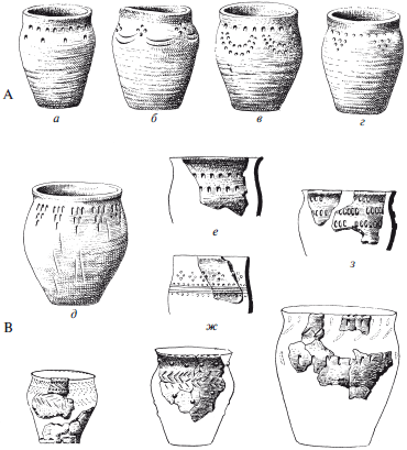 Рис. 30.Горшки из Фатьянова с солярной символикой, ранний бронзовый век, кладбище Буй близ Вятки
