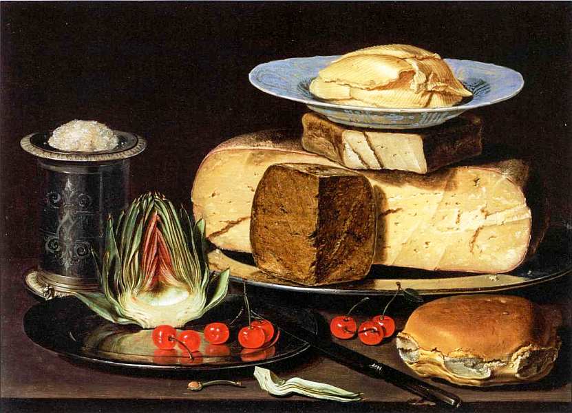 Клара Питерс (около 1594-после 1657) Натюрморт с сыром, артишоком и вишнями. Около 1625. Дерево, масло. 46,7x33,3