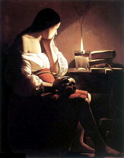 В период между 1635 и 1644 художник написал как минимум пять картин на тему раскаяния Марии Магдалины. Полотно, хранящееся в музее, является одним из главных украшений его экспозиции. Героиня сидит в ночной тишине, размышляя о бренности сущего. Ее фигура занимает большую часть холста, лицо, плечи, руки озарены неровным пламенем свечи. Ночная молитва, отказ от суеты воспринимаются здесь как постижение сакрального божественного света познания. Многие композиции художника настраивают на философское созерцание, а иногда носят и морализаторский аспект, за эти качества современники высоко ценили его полотна.