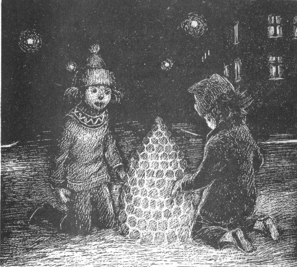 Аннароза выбирает из всех свечей одну и ставит в середину между снежками. Эту свечку прабабушка подарила мне на счастье, – говорит Аннароза, зажигая свечу, а Эльвис тем временем укладывает в фонарь последние снежки.