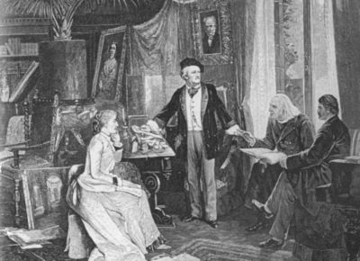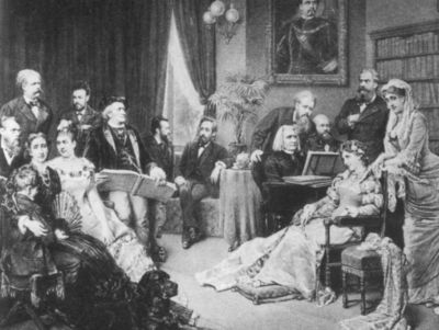 Вагнер в кругу друзей и родных на вилле Ванфрид под портретом Людвига II. Ф. Паппериц. 1882 г.
