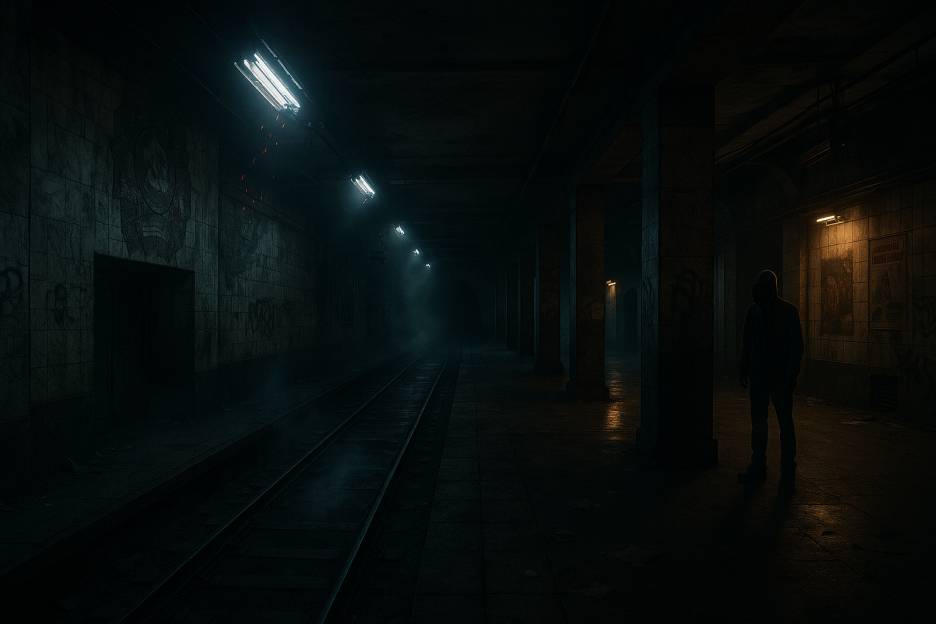 Поезд снова остановился. На этот раз в тоннеле, между станциями. Минуты тянулись медленно. Машинист молчал, не объявлял причину остановки. В полумраке вагона лица пассажиров казались еще более зловещими.