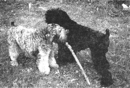Фактура шерстного покрова связана и с интенсивностью окраса. Так, возрастное осветление, наблюдаемое у серебристых пуделей, кэрри блю терьеров, бобтейлов и др., возникает из-за меньшей плотности пигментных зерен в разных слоях волоса. Эти собаки, как правило, имеют довольно тонкую, долго формирующуюся с возрастом шерсть. Тонкая и мягкая, ватной структуры шерсть часто бывает также у коричневых и красных пуделей, сильно осветляющихся с возрастом. Но в то же время у многих белых собак шерсть прекрасной структуры. Дело в том, что белые волосы часто имеют специфическое строение. Все их слои заполнены аморфными неокрашенными клетками, не позволяющими проникнуть туда зернам пигмента, но вместе с тем и создающими необходимую плотность волоса. Шерстный покров собаки формируется очень постепенно и достигает своего окончательного развития лишь к трем – четырем годам, а иногда и позже. Красивый шерстный покров правильной структуры, позволяющий смоделировать прическу любого фасона, может сформироваться у собаки только при планомерном и совершенно специфическом для породы уходе за кожей и шерстью. Его качество в огромной степени зависит от состояния здоровья собаки. Очень большое значение имеет и полноценное кормление.