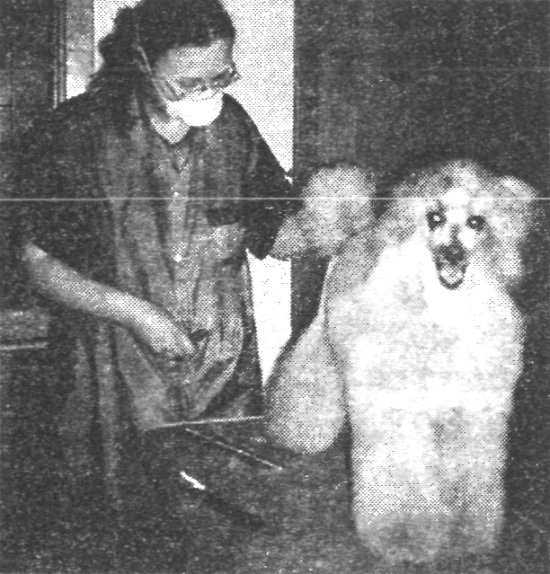 Защитные приспособленияМногие мастера расчесывают, сушат и стригут собак в респираторе или марлевой маске, защищающей верхние дыхательные пути от попадания шерсти и механической пыли, способствующих развитию аллергии.