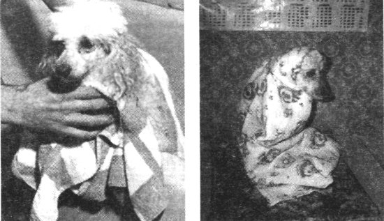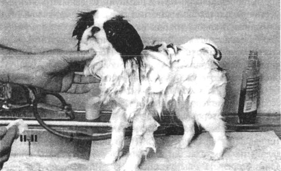 Рис. 61. После мытья собаки с использованием масла или бальзама ее в течение некоторого времени выдерживают завернутой в полотенце