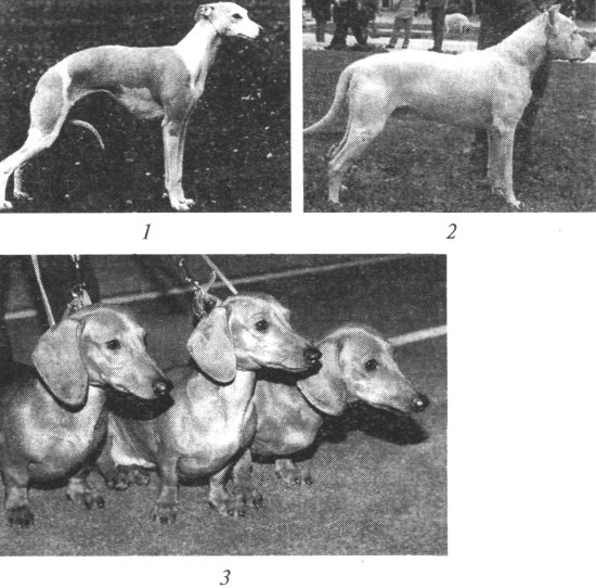 1 – уиппет, 2 – аргентинский дог, 3 – таксы
