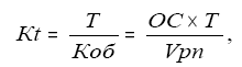 Коэффициент оборачиваемости вычисляется как отношение объема реализованной продукции к среднему остатку оборотных средств:
