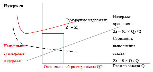 С – затраты по содержанию на единицу запасов за некоторый период, также включающие расходы по хранению, транспортировке, страхованию вместе с требуемым уровнем прибыли на инвестированный в запасы капитал;