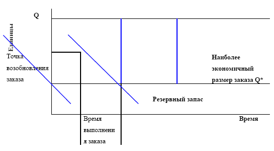 Средний объем запасов = Q / 2 единиц, где Q – заказанный объем запасов (в единицах); причем предполагается, что он не изменяется в течение всего рассматриваемого времени.