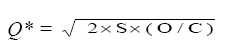 Допустим, что стоимость выполнения одного заказа (О), затраты по содержанию единицы запасов (С) и величина расхода товарно-материальных ценностей за некоторый период (S) являются постоянными неизменными величинами.Если также принять, что расход запасов устойчив во времени, то: