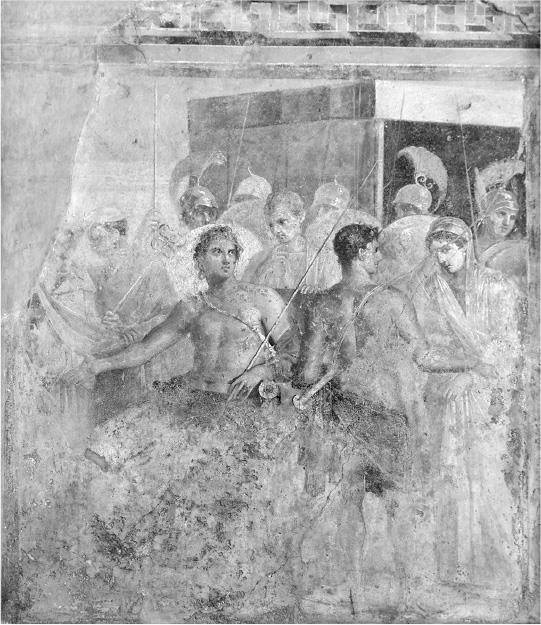 Ахиллес отдает Брисеиду Агамемнону. Фреска из Дома поэта-трагика в Помпеях (I в. н. э.)
