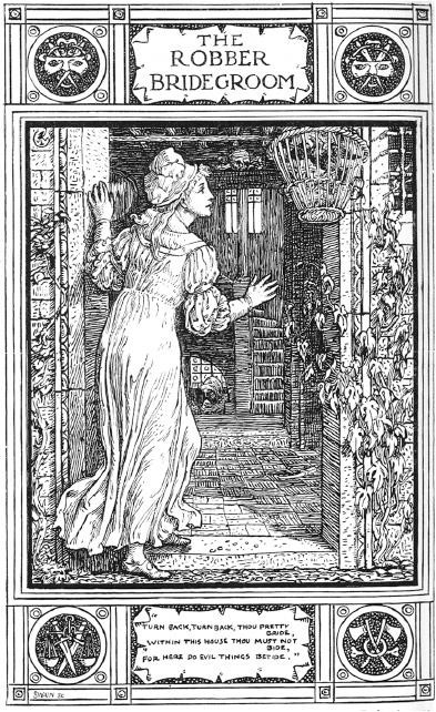 У. Крейн. Иллюстрация к сказке братьев Гримм «Жених-разбойник» (1886)