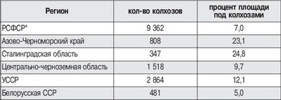 * – за исключением Северного Кавказа Источник: ЦГАНХ СССР ф. 7486, оп. 3 д. 4456 (таблицы данных о состоянии колхозов в 1932 году, составленные по материалам годовых отчетов)