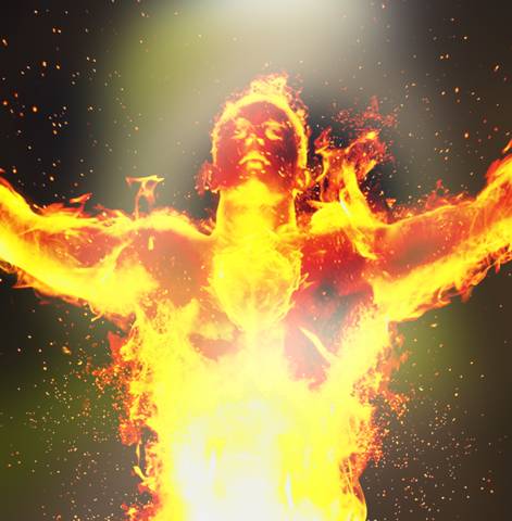 После этого его тело полностью покрылось огнём. Он был похож на огненного человека, которого только что облили бензином и подожгли. Только вот, пламя его не трогало. Огненные языки словно исходили из самого тела.