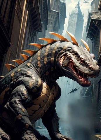Быстро ринувшись на звук, я вышел к группе магов, которые стояли около огромной ящерицы, похожей на саламандру. Только вот размером она была в пять этажей.