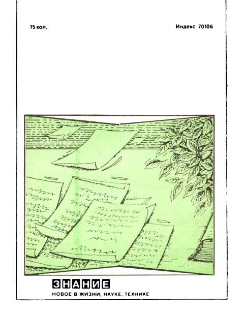 Сдано в набор 11.10.86. Подписано к печати 09.01.87. А 02815. Формат бумаги 70Х1081/32. Бумага тип. № 1. Гарнитура литературная. Печать высокая. Усл. печ. л. 3,50. Усл. кр.-отт. 3,76. Уч.-изд. л. 3,64. Тираж 157 840 экз. Заказ 2380. Цена 15 коп. Издательство «Знание». 101835 ГСП, Москва, Центр, проезд Серова, д. 4. Индекс заказа 872201.