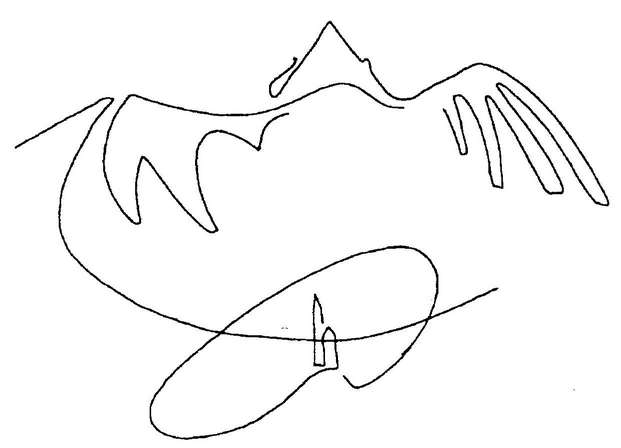 На уровне церковного помещения я заметил еще одно элементарное существо, когда поднялся из подземной часовни и посмотрел в направлении главного алтаря. Я увидел обугленную сущность, производившую впечатление выгоревшей. Видна была только верхняя часть фигуры высотой около восьми метров. Итак, я снова спустился в подземную часовню, чтобы посмотреть, продолжается ли фигура внизу. И действительно, я увидел фигуру дэва, которая уже в течение нескольких тысячелетий обслуживает свой фокус на одном и том же месте. Будучи высшей инстанцией сакрального места она ответственна за взаимодействие всех сил, которые превращают это место в энергетическое. Такую дэва я называю дэва места[42]42