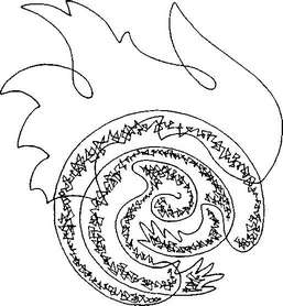 Когда мы посетили Градишка на этот раз, меня притянула к себе могучая сосна, которая простерла свои ветви над первым из трех помещений. Вплетенная в ее ветви космограмма в форме лемнискаты позволяла сделать вывод, что эта сосна является деревом фей. Когда я, стоя очень близко к стволу, создавал полную любви связь с фавном дерева, он неожиданно послал мне в высшей степени неприятную картину. Я увидел угольно черное существо, внезапно его охватывало пламя, от боли оно каталось по полу, чтобы таким образом погасить огонь. Но как только черное существо пыталось выпрямиться, как на его теле вновь вспыхивали языки пламени. От боли оно снова бросалось на пол, чтобы сбить пожар, но огонь снова разгорался, как только оно поднималось. Казалось, что этот процесс повторяется бесконечно. Муки этого существа не кончались никогда.