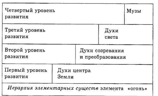 Римские цифры в скобках обозначают уровень развития, к которому относится соответствующее элементарное существо.