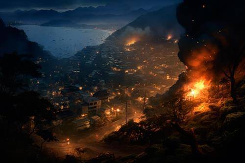 Ниже, как ни в чем ни бывало, горел яркими огнями город на побережье. По широкой набережной спокойно ехали машины, буквально в километре от полыхающего холма. Ни мигалок, ни сирен…