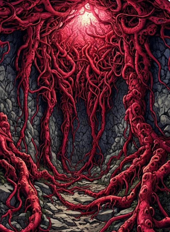 Плоть распластавшегося монстра вздымается вверх, образуя подобие живого мерзостного каньона. Гудение Мощи, вибрация по броне. Взмах меча и она опадает безжизненными пластами. Вновь пытается ухватить меня, опутывает ноги, но сталь рвет ее, словно бумагу.
