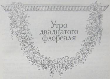 Утром двадцатого флореаля в седьмой год Французской Республики, единой и неделимой, муниципальный совет, созвав по сигналу тревоги всех своих членов, как то: Женева, мэра, Демулена и Фортье, офицеров национальной гвардии, и Дюкасса, представителя метрополии, собрался в мэрии кантона Черной речки.
