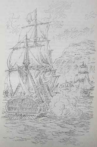Английские корабли стремились построиться так, чтобы взять французов в два огня, с правого и левого борта, но те, с необыкновенной дальновидностью предупреждая вражеские маневры, продолжали вести огонь в надежде на перемену ветра, что вынудит нападающих изменить курс. Но шквалы, изредка налетавшие из глубоких прибрежных ущелий, были слишком непродолжительны. Ветер упорно дул с моря.