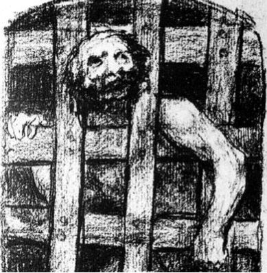 В клетке осужденный обычно не мог разогнуться в полный рост. Через несколько лет, проведенных в такой позе, человек становился уродом.