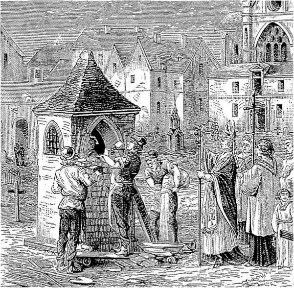 К заточению навечно, или замуровыванию, в Европе XIV века приговаривали суды инквизиции. Эта казнь, входившая в число высших мер наказания, заключалась в том, что приговоренного помещали в каменный мешок, наглухо заделывая выходы. Замурованные медленно умирали от голода, жажды и недостатка воздуха.