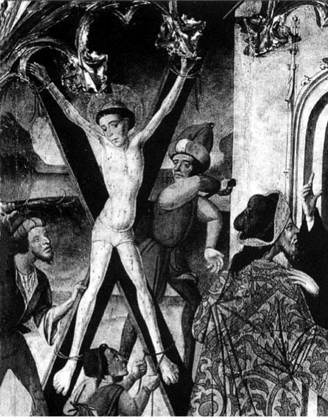 Х-образный крест прозвали крестом святого Андрея по имени мученика Андрея, брата апостола Петра и ученика Иоанна Крестителя. Когда он очутился подле креста, то снял всю одежду и отдал палачу. Ему не стали прибивать руки и ноги гвоздями, а привязали их веревками, чтобы пытка продлилась дольше. Он прожил после распятия два дня.