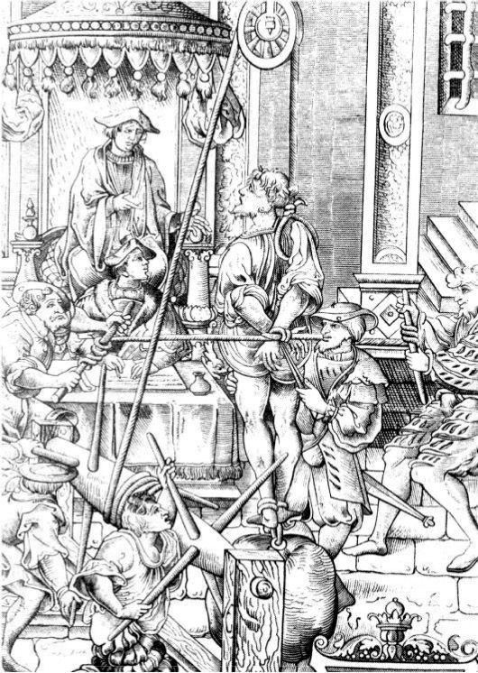 Казнь на дыбе. Гравюра на дереве, опубликованная господином де Савиньи в «Praxis Criminis Persequende» [9] 9