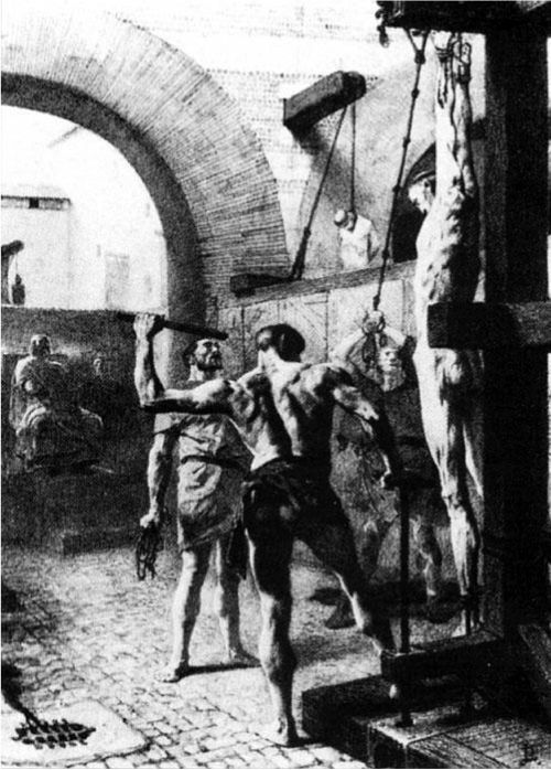 Осужденных издревле бичевали кнутом. Этот метод был в ходу как у иудеев, египтян, сирийцев, персов, так и у спартанцев и римлян.