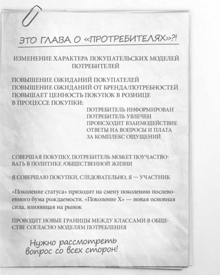 Люди, которых наши покупатели попросили делать записи, внесли важ–ный вклад. Некоторые даже потребовали (и получили) собственные блокноты, считая, что это интересный, приятный процесс, достойный их времени и усилий. Что еще важнее, это позволило им, свободно общаясь и проявляя свои творческие способности, провести некий маркетинго–вый опрос (по сути, именно это и произошло), причем его параметры определили они сами, а не мы или Sainsbury's (который, кстати, его не заказывал). В результате они проделали это с личной заинтересован–ностью, приложив все усилия.