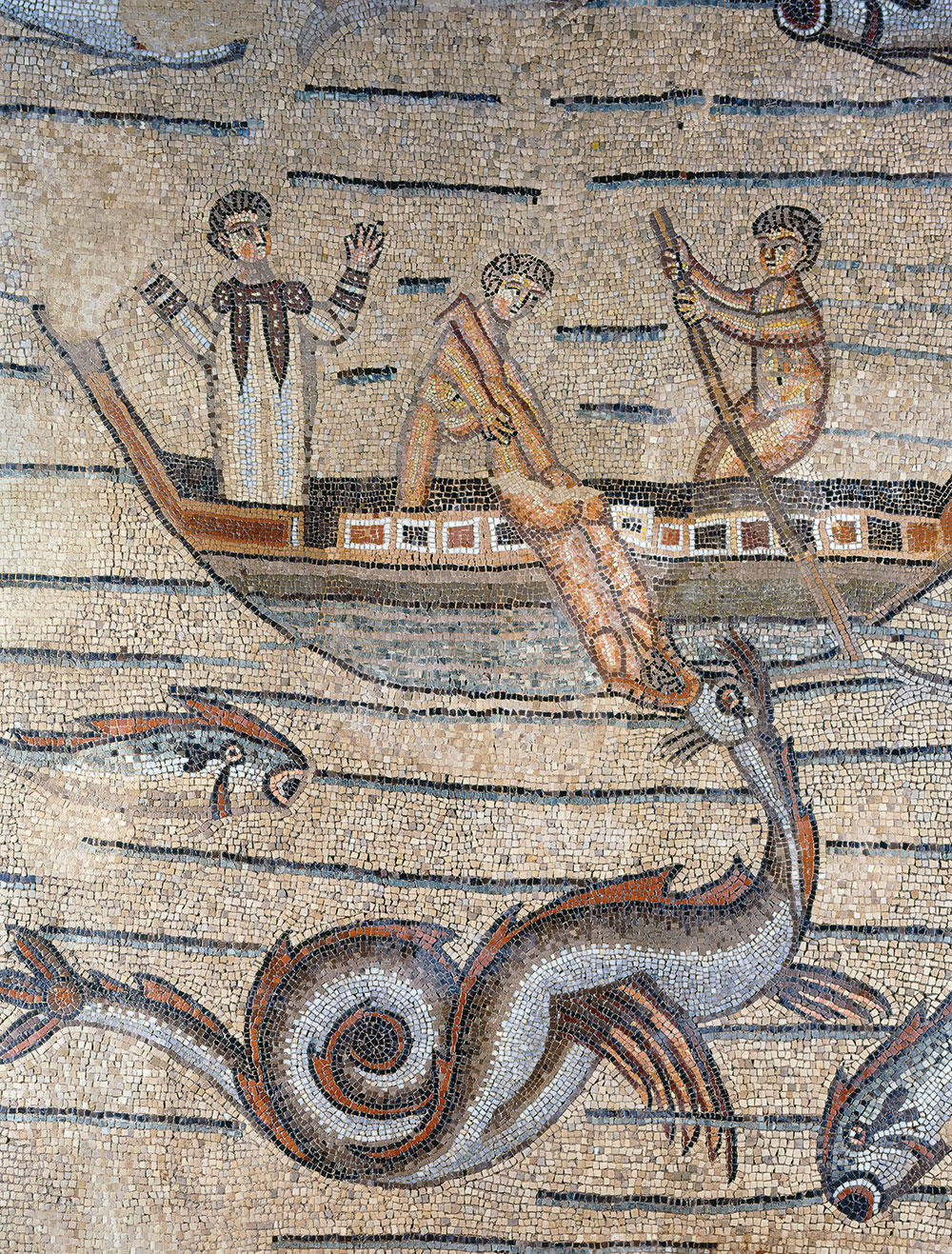 На древней мозаике чудище, размером с лодку, проглатывает, а затем покорно выплевывает обнаженную фигуру. Этот человек – никто иной, как пророк Иона[1]1