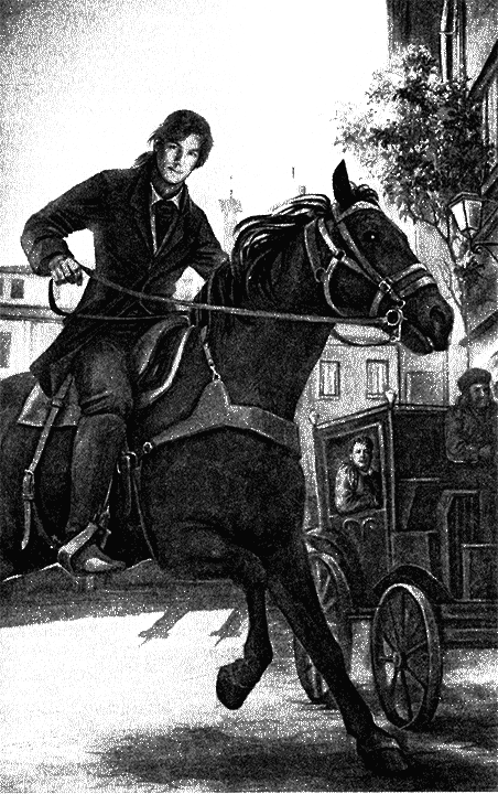 Из-за поворота показался всадник. Он несся галопом верхом на вороной лошади, а позади катила карета, запряженная белоснежными жеребцами и окруженная четырьмя всадниками в богатых ливреях.