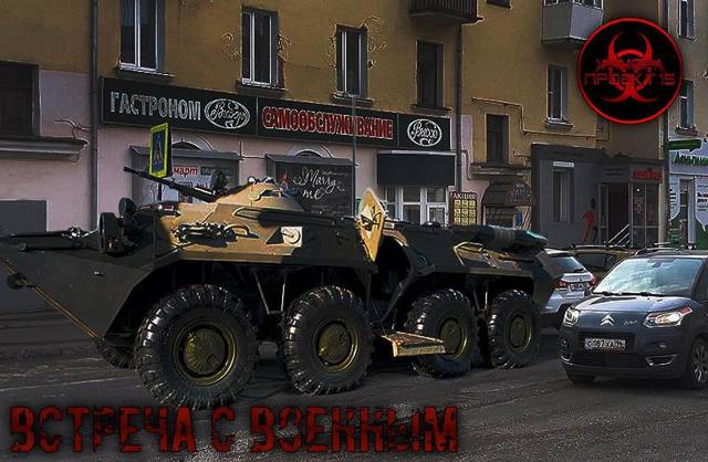 Пацаны согласились. Внедорожник свернул в арку и поехал через пустые дворы. БТР действительно стоял недалеко от дома Ивана, и стоял он напротив входа в продуктовый магазин «Четвёрочка». Ребята остановили джип, осторожно вышли из машины и пригибаясь, бегом приблизились к броневику.