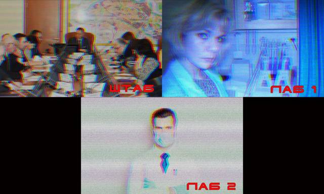 Вечером состоялась запланированная видеоконференция. В столовой повесили экран, по бокам поставили два стула, на которые водрузили небольшие колонки. Включили проектор подсоединённый через ноутбук к спутниковой станции. Появилась картинка в режиме разделённого экрана на три смежные части, две вверху и одна снизу. Все части имели метки. В верхней левой отобразился зал с двойным столом, за которым сидело много человек, снизу высветилась метка «ШТАБ». В правой верхней появилась руководитель первой лаборатории Селезнёва Наталья Игоревна и обозначение «ЛАБ 1». Внизу возник мужчина в маске и белом лабораторном халате и пометкой «ЛАБ 2». Первыми заговорили из штаба. Речь держал самый главный, Шпагин Геннадий Юрьевич.