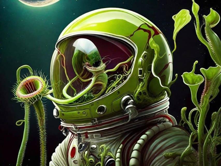 Муп находился в каком-то помещении. Правда, понять, что за комната, было невозможно. Даже форму и размеры – так густо оно было покрыто зелёными извивающимися стеблями какого-то растения. В прямом смысле извивающимися – они шевелились и сжимались, как будто это щупальца каких-то животных. Впрочем, для этой планеты такое было бы привычным, если бы это была местная, фиолетово-красная флоро-фауна. Но нет – эти стебли были весёленького зелёного цвета. А ещё там был человек. Это точно был человек, в скафандре. Давным-давно мёртвый. Прямо из разбитого забрала прорастал шевелящийся кустик.