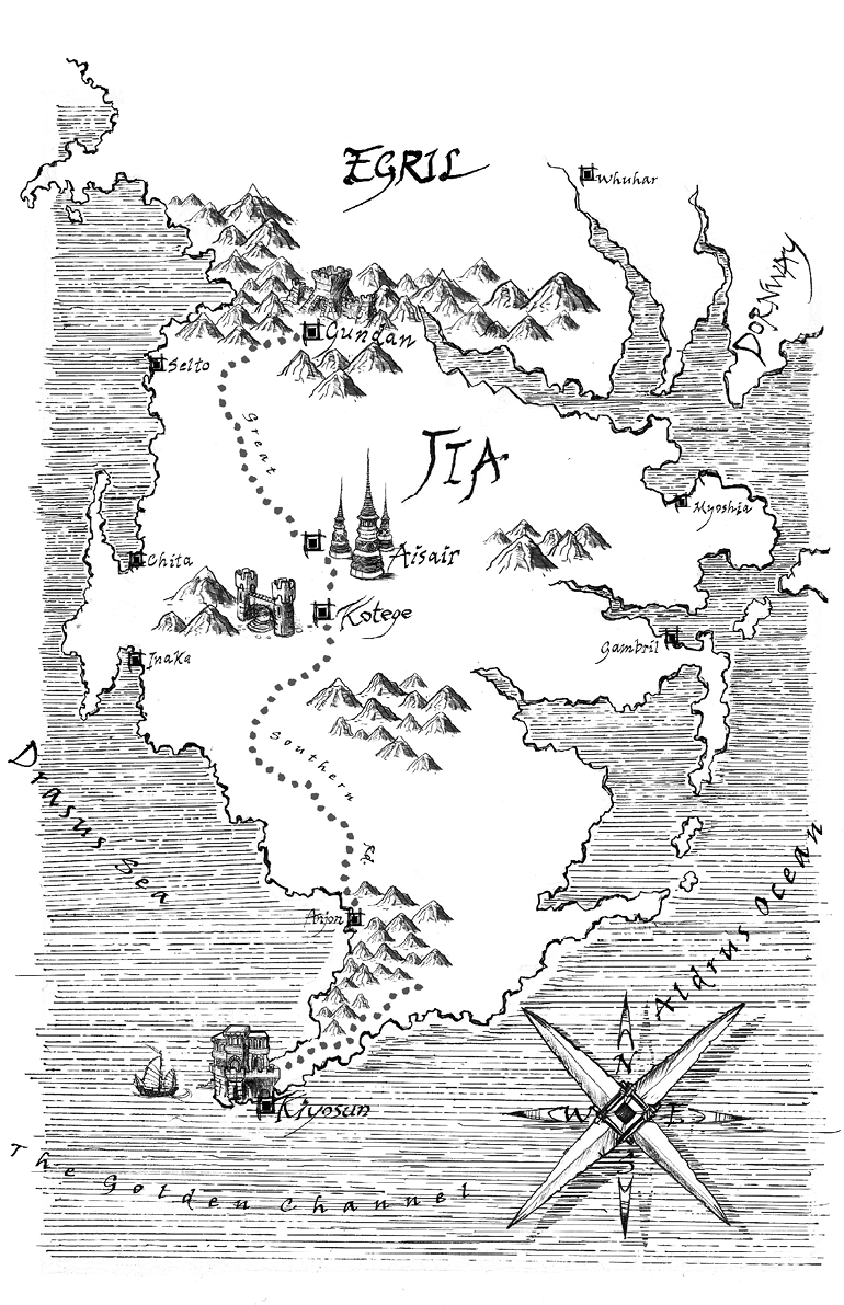 Под шлемом была карта; старая, потрепанная в боях. Джия занимала большую часть южной части континента, но на севере лежал Эгрил, их старый враг. Только крепость в Гандане отделяла Джию от них. Ей показалось, что она видит на карте пятна крови, покрывающие часть территории варваров. Подходяще, действительно. Других ориентиров не было – Эгрил не принимал гостей или послов. Эгрил не интересовался торговлей. Они хотели только того, что можно было украсть. Они любили только убивать.
