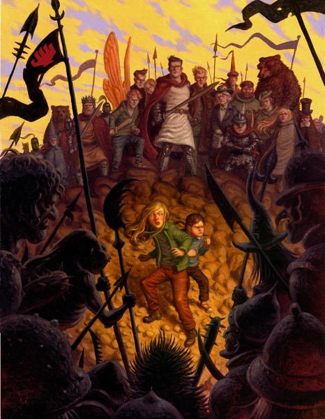 Вдруг в окно постучали. Сабрина выглянула в окно, ожидая увидеть несущуюся вдаль реку Гудзон. Однако от увиденного она чуть не упала с сиденья. В окно заглядывал знакомый лохматый мальчишка в пижаме с роботами, дерущимися с обезьянами. Удерживаемый в воздухе двумя гигантскими стрекозиными крыльями, он летел рядом с мчащимся поездом, ухмыляясь и показывая язык. Сабрина никогда в жизни еще не была так рада его видеть.