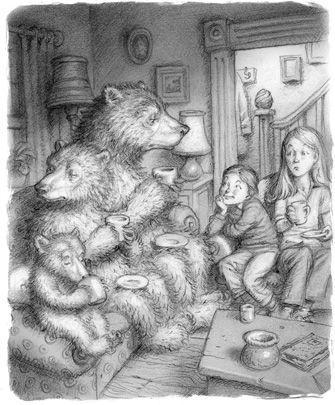 Там ее сестры и оставили и вернулись в гостиную с напитками. Сабрина обнаружила трех медведей, сидящих на диване и вытряхивающих последние леденцы из банки, которую бабушка Рельда хранила на кофейном столике для гостей. Самый большой медведь указал на банку, словно говоря: «ЕЩЕ!» От этого Сабрине стало не по себе. Она терпеть не могла, когда видела, что животные ведут себя как люди. Животные не должны есть леденцы! И не должны пить чай и шоколадное молоко!
