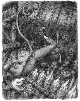 Уперев руки в бедра, Пак повернулся на пятках. Лишь он остановился, как начал превращаться. Тело увеличилось до огромных размеров. Нос отвис почти до пят, а уши стали серыми и раздулись до размеров воздушных змеев. Из-под носа выросли два больших белых бивня, а кожа стала морщинистой и грубой. В мгновение ока он стал слоном. Доковыляв до ближайшего валуна, он прижал голову к нему и толкнул. Тяжелый камень покатился вперед, медленно, но покатился. Несмотря на явную тяжесть, Пак двигался вперед, пока валун не оказался точно в ковше катапульты.