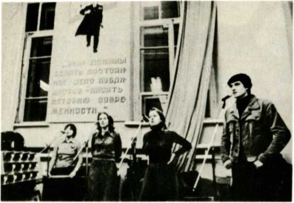 Одним из самых популярных в стране ансамблей политической песни является коллектив «Плакат», в который входят студенты и преподаватели факультета журналистики Московского государственного университета. Созданный в 1976 году, он дал более 200 концертов в различных учебных заведениях и на предприятиях, стал лауреатом Международного фестиваля песни в Берлине в 1976 году, а в 1980 году завоевал специальный приз на Международном фестивале песни в Москве. Я понял, чем заслужил «Плакат» такой успех, когда слушал «специальное выступление», организованное для меня в студии звукозаписи факультета студентом и солистом ансамбля Юрием Яковлевым. Юрий прокрутил для меня записи нескольких лучших песен из репертуара ансамбля. Я обратил внимание на одну из них, в которой в качестве прелюдии было использовано щебетание птиц.