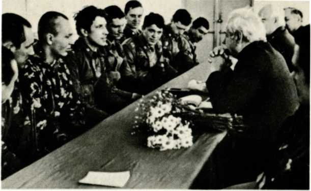 – Начну по порядку. Во-первых, жизненный опыт передается и усваивается значительно труднее, чем знания и умения. Но мы стараемся воспитывать молодежь и в семье, и в школе на революционных и трудовых традициях. Много дают молодым встречи с участниками войны и ветеранами труда, организуемые на фабриках и заводах, в колхозах и совхозах и, конечно же, здесь, в университете. Важно научить молодежь видеть традиции во всем, что окружает их сегодня.