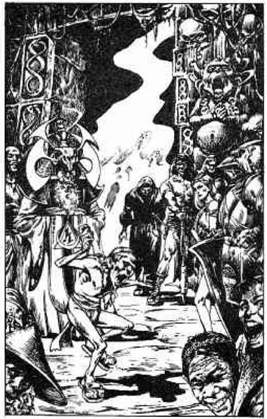 Первым идет Рыцарь. Поприветствовав толпу прощальным взмахом меча, он скрывается в туннеле; полчаса спустя за ним следует эльфийская дева. Затем в темные глубины спускается Варвар, за ним – черный убийца. Пришел твой черед прощаться с дневным светом. Затянув потуже лиловый шарф, ты полной грудью вдыхаешь свежий утренний воздух и делаешь первый шаг в обрамленные каменными колоннами ворота по проложенной мрачной думой барона Сукумвита стезе, чтобы лицом к лицу столкнуться с неведомыми опасностями за полными неизъяснимого ужаса поворотами Лабиринта Страха.