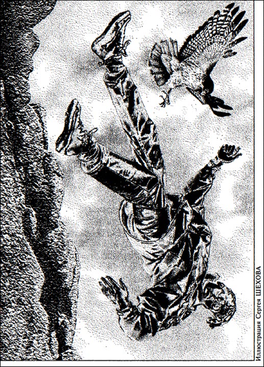 На этом уступе, как я тут же обнаружил, находилось большое птичье гнездо, и неприветливая самка ястреба бдительно оберегала пару птенцов. Как только моя голова показалась над краем уступа, птица пронзительно вскрикнула и быстро клюнула меня в руку. Это было не больно, по крайней мере в обычном человеческом смысле, однако от неожиданности я сильно вздрогнул на скользком от птичьего помета уступе.