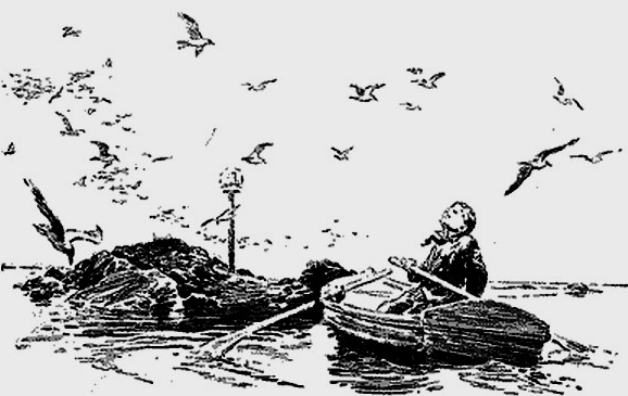 Ах, сколько раз, и с каким нетерпением ждал я случая съездить на этот островок! Но случая все не представлялось. Островок лежал слишком далеко для моих обычных прогулок, и слишком опасно было отправляться туда одному на утлой лодчонке. Гарри Блю обещал свозить меня туда, но в то же время посмеивался над моим желанием посетить островок. Что ему эта скала! Он не раз проплывал мимо нее, даже высаживался там и привязывал лодку к столбу, чтобы пострелять морских птиц или половить рыбу, но мне ни разу не случилось сопровождать его в этих увлекательных поездках. Я все надеялся, что он как-нибудь возьмет меня с собой, но под конец утратил всякую надежду: ведь я был свободен только по воскресеньям, а воскресенье было для моего друга самым трудовым днем, потому что в праздник множество людей хочет кататься по морю.
