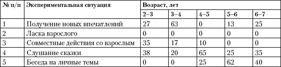 В 4–5 лет дошкольники выразили свое предпочтение к… ситуации, где взрослый рассказывал им сказку. Очевидно, сведения, сообщаемые взрослым, и он сам как рассказчик служили мотивом поведения детей при выборе ими ситуации.