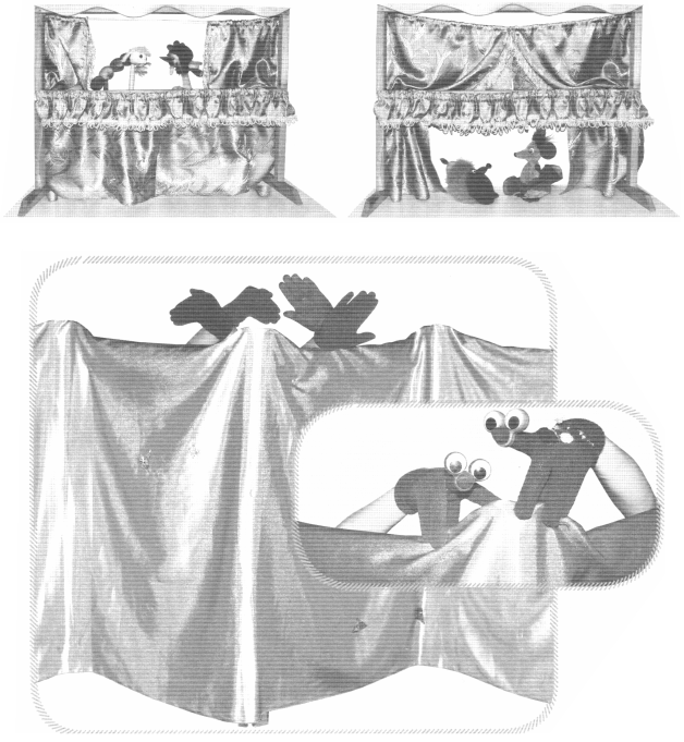Работа с куклой на ширме строится по тому же алгоритму: выход – выступление – поклон – уход.